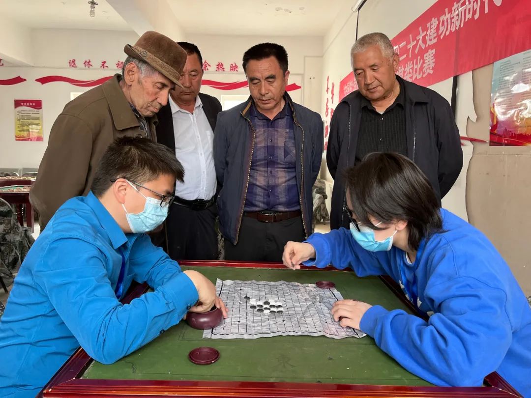 棋手们在对弈过程中以棋会友,切磋棋艺,精进棋艺的同时收获了真挚的友谊,经过两个小时的激烈角逐,来自十连的职工群众袁关正和大学生西部计划志愿者杜增政分别斩获了象棋组和围棋组的冠军。