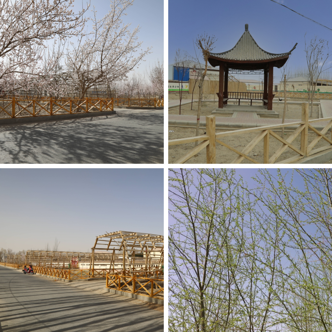 一排排崭新明亮的住房坐落有序,一条条柏油路修到了群众家门口和田间地头,一片片防护林初露新芽,一排排木栅栏、葡萄架和 “宜居亭”整齐划一,一幅幅绘有兵团文化、民族团结、乡村振兴等元素的墙绘色彩鲜明。走进二二五团二连,大街小巷干净整洁,道路两旁宣传栏焕然一新,杏花、桃花争先绽放,群众利用农闲时节或空余时间就到亭子里聊家常、话里短,日子过得有滋有味。
