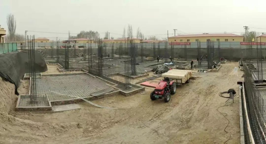 日前,吐尔迪庄园修缮保护与利用设施建设项目已开工建设。在展馆施工现场,工人们正在进行底层钢筋铺设作业。