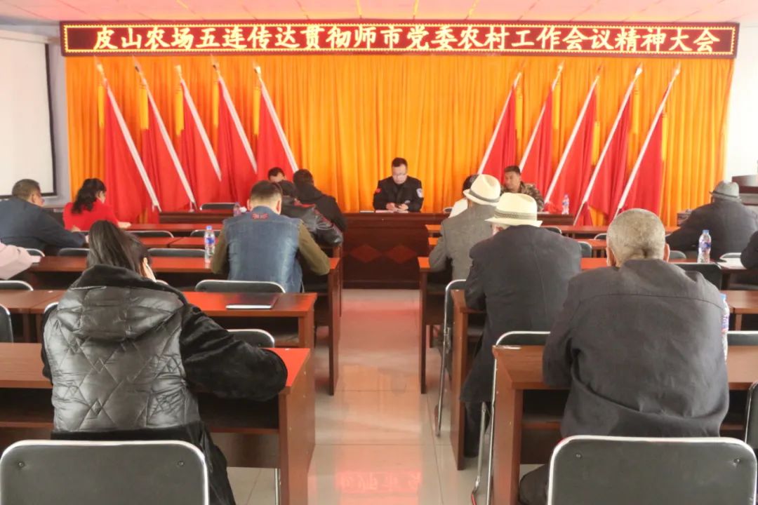 3月25日下午,皮山农场五连召开会议传达贯彻师市农村工作会议精神,连队“两委”、“访惠聚”工作队、群众党员参加了此次会议。