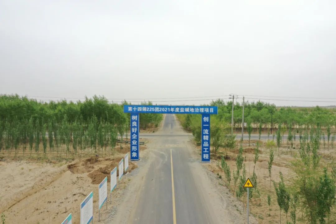 荒野变绿洲,荒地变林园。近年来,二二五团不断植树造林、种植苜蓿牧草等,改良盐土改善农田小气候,减低风速,增加空气温度,从而减少地表蒸发,抑制返盐。如今,一片片纵横交错的杨树林,一棵棵高高挺立的白桦树,一块块充满希望的绿色田野,在这片土地上续写“绿色奇迹”。