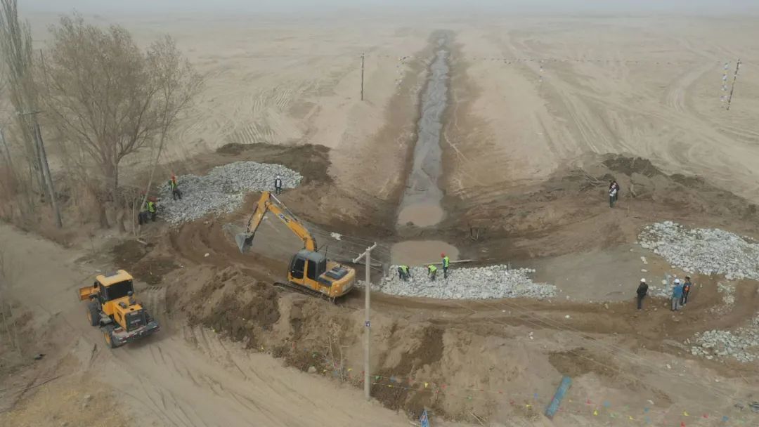 “你们现在看到的是暗排的最后一道工序,也就是衬砌,目的是防止农田碱水从管道排放之后,将排碱渠的护坡毁坏。”二二五团盐碱地治理项目负责人翟耀武介绍道。