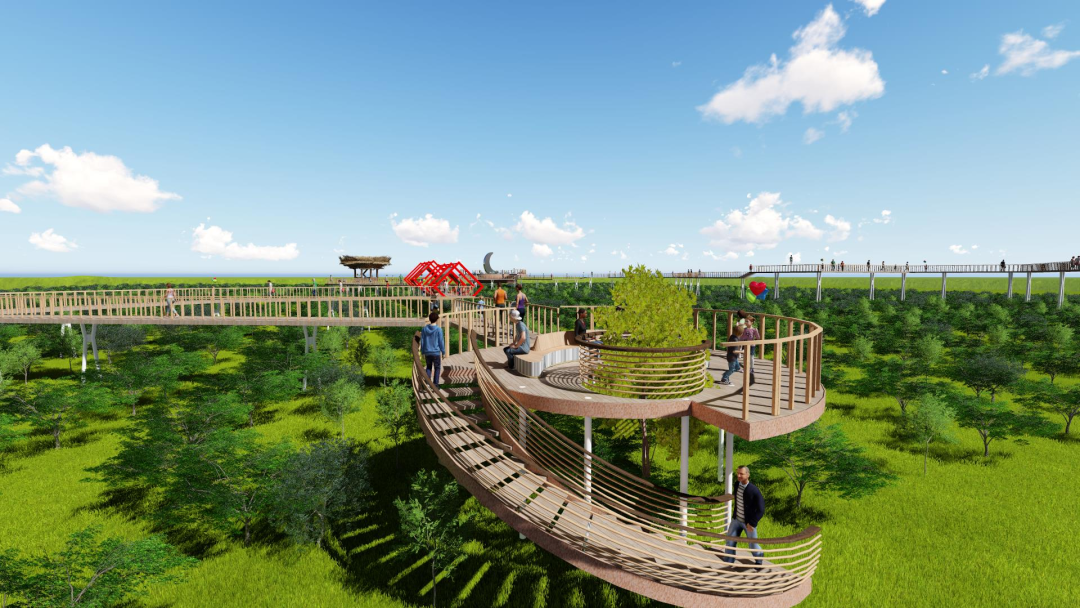 昆玉红枣农文旅融合发展项目工地负责人刘龙龙介绍道:“我们这个项目从2月份开始动工,截至目前,‘初心枣园’景观大门已经完成,空中栈道也在加紧修建中,预计5月中旬完工。”