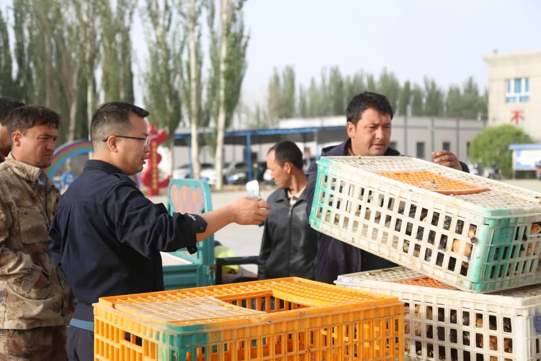 4月19日天刚亮,师市皮山农场五连职工阿木提·达吾提就在自家的院子里忙碌着,为即将分给他的20只雏鸡搭圈、消毒。准备工作完成后,他便提着筐子赶到了广场上领取“访惠聚”工作队发放的鸡苗。