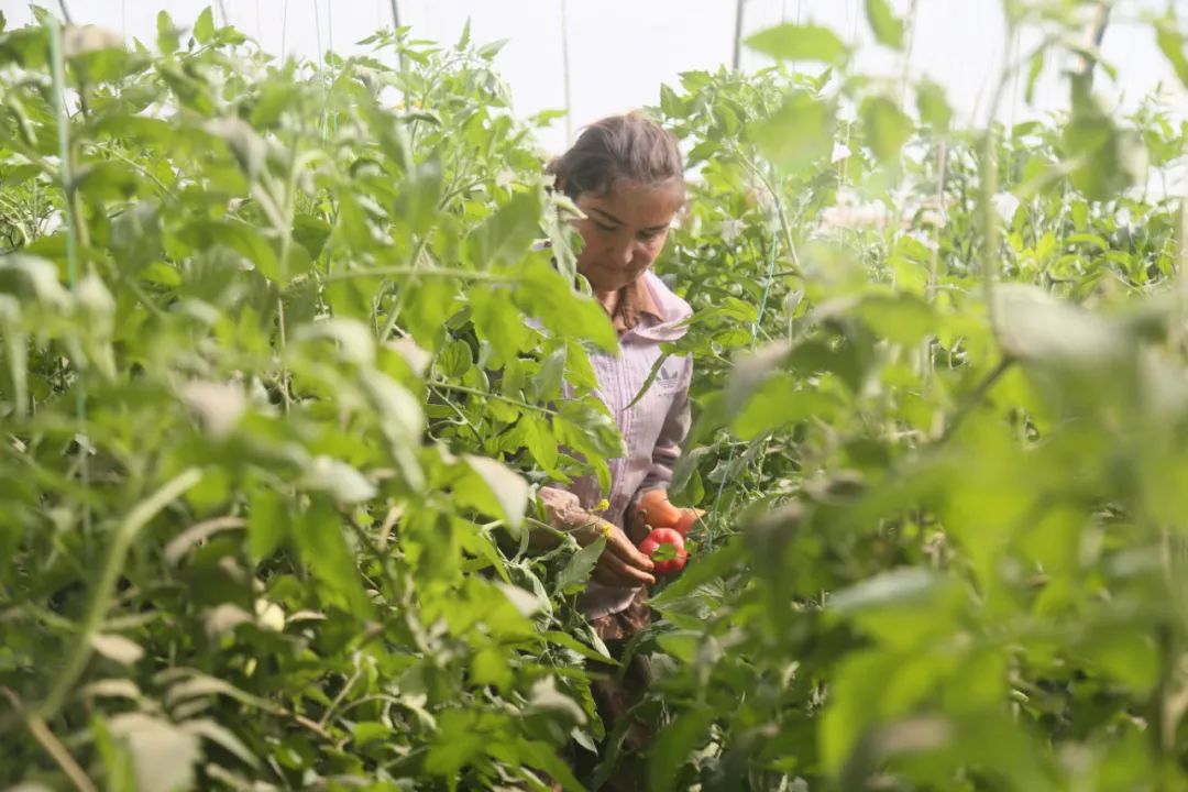 在四十七团八连职工布买热木·买买提的大棚里,她正在对自家的西红柿苗进行打叉。她告诉记者,自2016年以来就开始摸索着种植大棚蔬菜。由于过去没有种植经验,缺乏技术指导,一直没有挣上钱。经过最近几年的摸爬滚打,以及连队组织的技术培训和帮扶,她和丈夫探索出了一套蔬菜种植的“良方”。如今,她彻底掌握了设施农业种植技术,自家的蔬菜大棚已经成为她增收致富的“聚宝盆”。