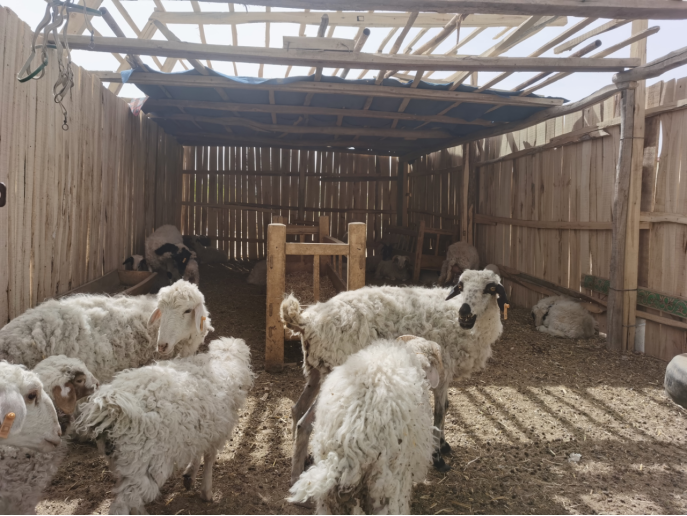 走进一连群众艾萨·木沙的家里,他正忙着整理自家庭院,按照连队发展庭院经济统一规划,他的庭院实现了三区分离,生活区、养殖区、种植区规划的整整齐齐。在连队“访惠聚”工作队和连队的帮助下,他新建了羊圈,养了41只“和田羊”和50只鸽子,开始发展养殖业,预计年收入能达到5万余元。庭院里还种有苹果、葡萄、甜瓜、西红柿白菜等水果蔬菜,“我们吃不完的还可以拿出去卖,能够补贴不少家用呢。"一连群众艾萨·木沙说。