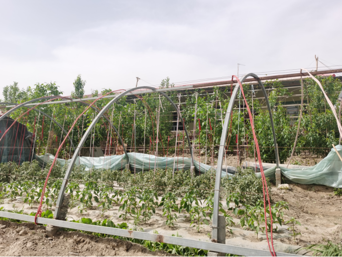 把庭院“方寸地”建成“增收园”。呈现出一片生机勃勃的景象。走进村民亚森江·阿不都卡地家,整齐的院子进行了合理的规划。左侧是他的电商超市,庭院里种有西红柿、辣子、果树应有尽有。羊粪可以用作菜园子的肥料,蔬菜不仅长势喜人,羊粪也得到了合理的利用。发展庭院经济是乡村振兴的一部分,不仅增加了村民的收入,也让农家小院变得整齐美观,极大地改变了连队居民的生产生活方式,为推进美丽连队建设、实现广大农民群众增收致富创造了良好的发展环境。