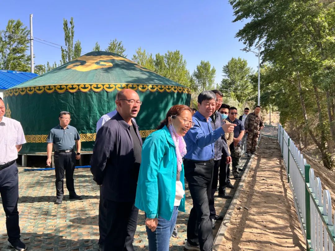 王显车一行先后来到一牧场军牧红色旅游基础设施建设项目(一期)、五连500亩标准饲草田、三连健康素养广场项目等地进行实地调研。