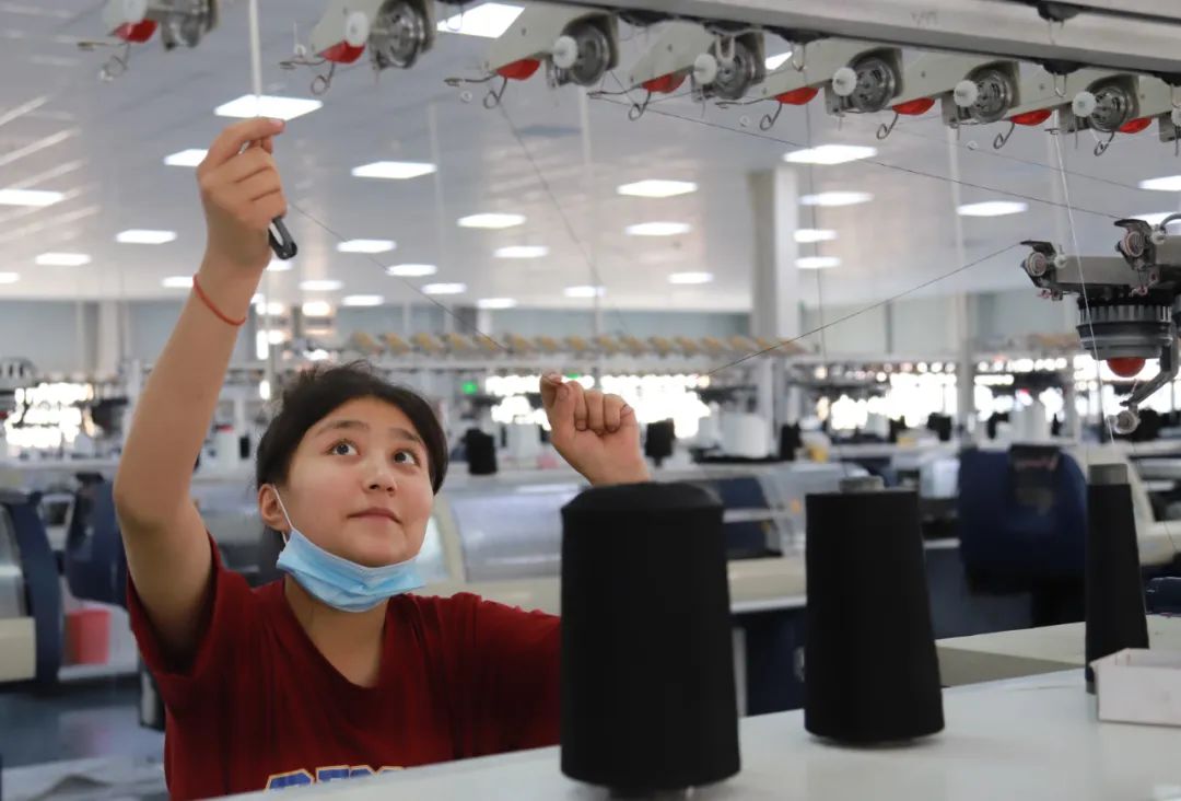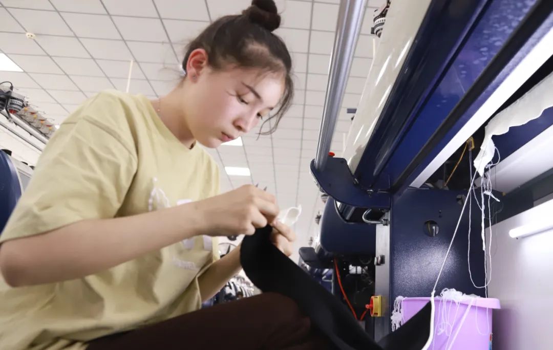 “我们企业缺工人,管委会给我们牵线搭桥联系了和田县中等职业学校,经过我们彼此的深入沟通,我们企业和学校建立了校企合作模式,我们向学校捐赠了300台纺织横机供学校学生实习,学校答应定期给我们输送50名学生到我们企业见习。目前输送的学生很稳定,切实解决了我们的用工困难。我们嘉利联2022年第一季度工业总产值1431万元,嘉利联和金泰针两家公司二季度又承接了17万件毛衫的订单,生产形势非常好。这都得益于园管委会的大力支持和帮助。”嘉利联公司管理人员桑建继续向笔者说到。