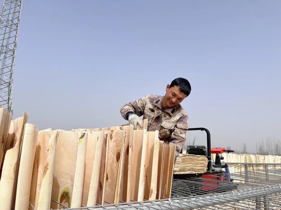2021年,皮山农场与兵团党委编办驻六连“访惠聚”工作队协商,通过多方联系,引进一家企业,添置了当下先进的木材加工生产线,盘活了皮山农场六连木材加工厂。