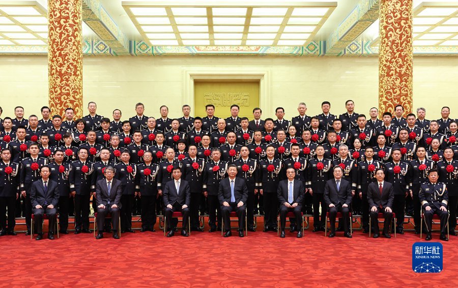 5月25日,党和国家领导人习近平、李克强、王沪宁等在北京人民大会堂会见全国公安系统英雄模范立功集体表彰大会代表。新华社记者 李学仁 摄