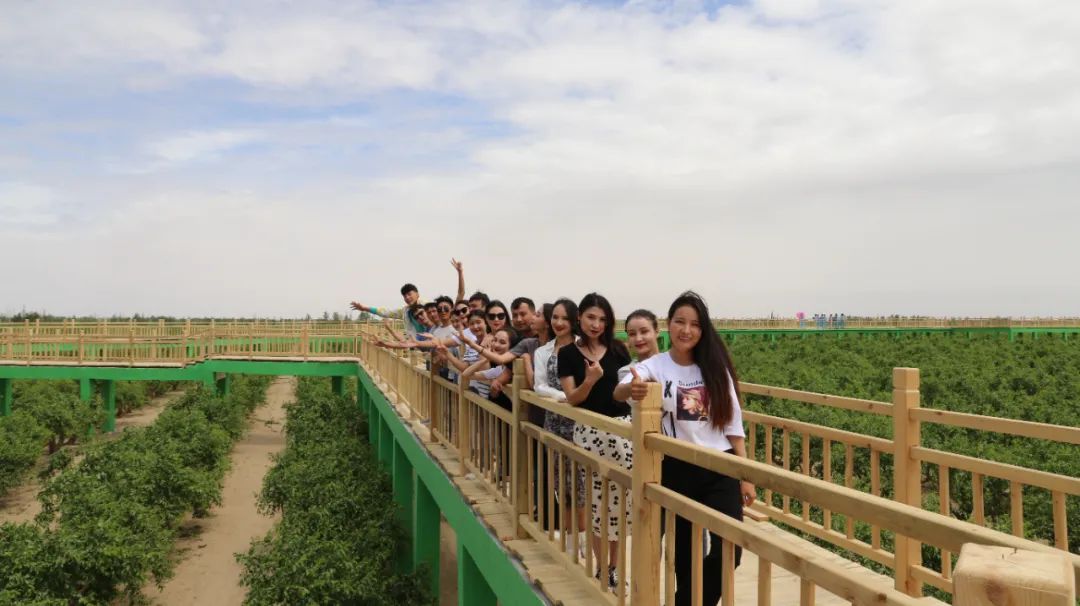 随着乡村振兴战略进程逐步加快,挖掘培优红枣文化、打造红枣文旅精品品牌成为二二四团产业转型升级发展的新路子。目前,团场全面整合现有红色文化旅游资源和绿色生态资源,以枣花文化旅游节为载体,依托二连初心枣园,打造集研学、观光、采摘体验、饮食娱乐为一体的红枣产业示范园区,全长300米的空中生态木栈道、“初心枣园”大门、“千秋时光”文化长廊等“打卡点”相继建成,玉枣DIY工坊、灯光亮化等配套设施正在建设中。串“网红打卡点”、连“精品旅游线”,二二四团围绕旅游全域化发展总基调,着力构建全域旅游发展格局,推动旅游向内容化、品质化、品牌化方向转变。