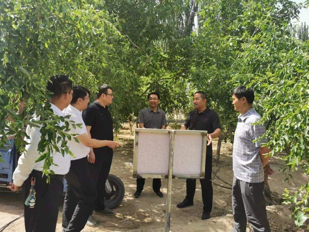 在皮山农场九连林下花生试点田,彭利锋一行就2022年皮山农场林下花生种植规模、模式及预计产出进行了解。彭利锋指出,皮山农场要紧抓北京援建机遇,依托产业援疆、科技援疆,将花生种植作为皮山农场破题林下经济增收的可选方向,助力解决畜牧业饲草料短缺、农业产业链延伸不够,附加值低等问题,更好的调优农业产业结构,增强职工群众通过农业产业发展增收致富的信心和决心。