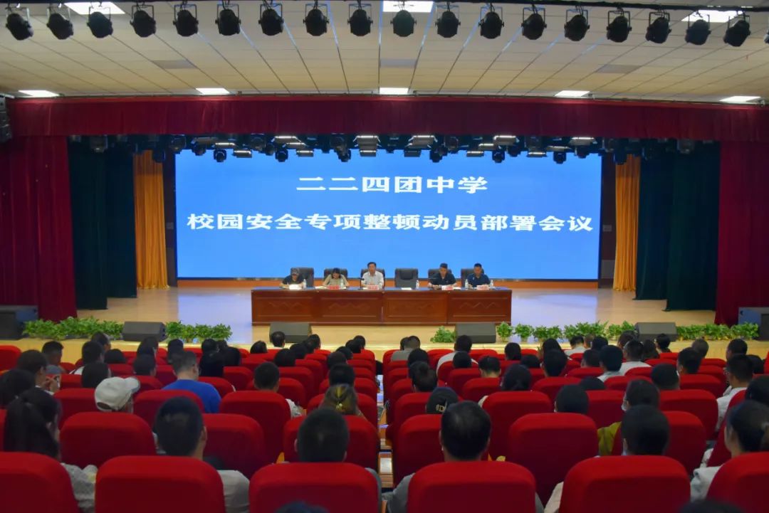 为深入学习贯彻习近平总书记关于校园安全的重要指示批示精神,贯彻落实党中央、国务院、自治区和兵团党委关于校园安全工作的部署要求,做好校园安全稳定工作,深化“平安校园”建设,提升校园内部治理能力和管理水平。6月13日,二二四团校园安全专项整顿动员部署会议在二二四团中学召开,二二四团党委副书记、副政委、政法委书记刘天国出席会议并讲话,二二四团相关部门工作人员及二二四团中学全体教职工参加会议。