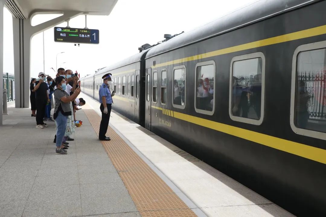 和若铁路首发日玉泉镇乘车群众感党恩。师市融媒体中心记者 李晓丽 摄