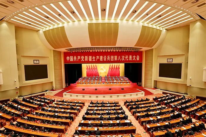 6月19日,中国共产党新疆生产建设兵团第八次代表大会胜利闭幕。图为大会会场。 兵团日报全媒体记者 张鑫 摄