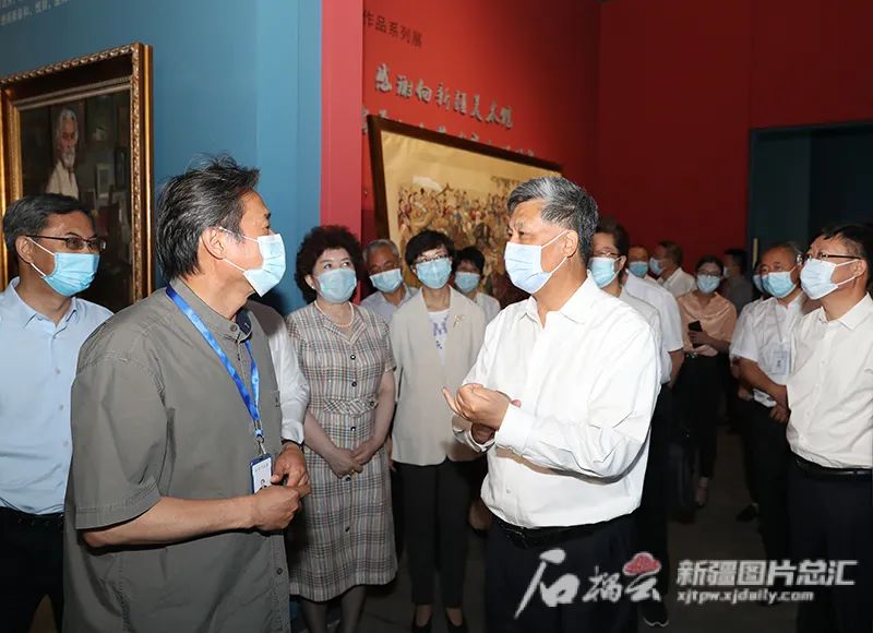 6月20日,自治区党委书记马兴瑞在新疆美术馆了解新疆美术发展脉络和优秀艺术成果。石榴云/新疆日报记者 崔志坚摄