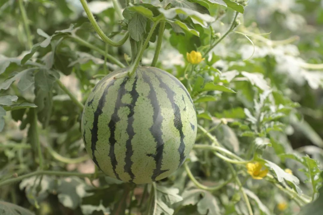 大棚里,职工们忙着打叉、盘头、摘蔓、吊瓜,精心呵护处于不同生长阶段的西瓜。王涛利用丰富的种植经验,科学培植,再加上大棚里适宜的温度,西瓜水分足、甜度高。