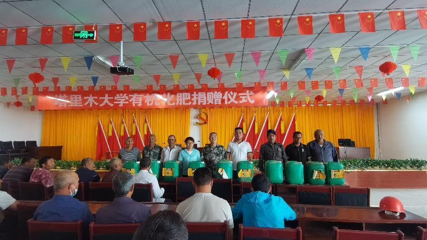 张锐教授一行向皮山农场一连赠液体有机发酵菌肥5吨,惠及职工群众100户。在捐赠仪式上,第一书记梁付江代表一连“访惠聚”工作队、党支部、全体职工群众向塔里木大学表示感谢,助力乡村振兴,坚持“用胡杨精神育人,为兴疆固边服务”。张锐教授一行代表塔里木大学向一连职工群众发放了有机肥,并介绍了这种新型有机肥的作用和使用方法。