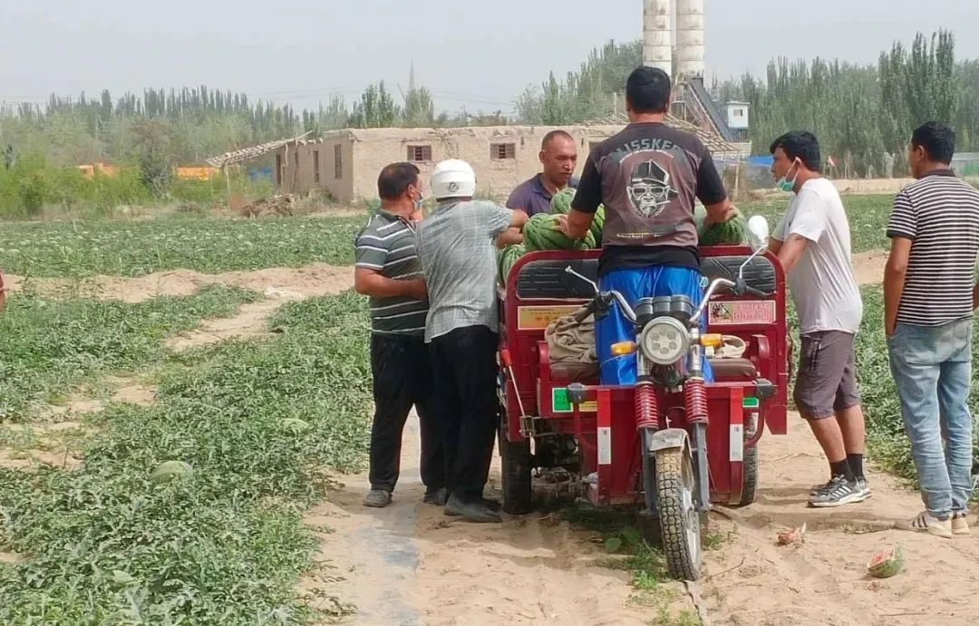 眼下正值西瓜成熟时节,三连职工种植的约170亩西瓜喜获丰收,目前,职工群众正忙着采摘、运输。