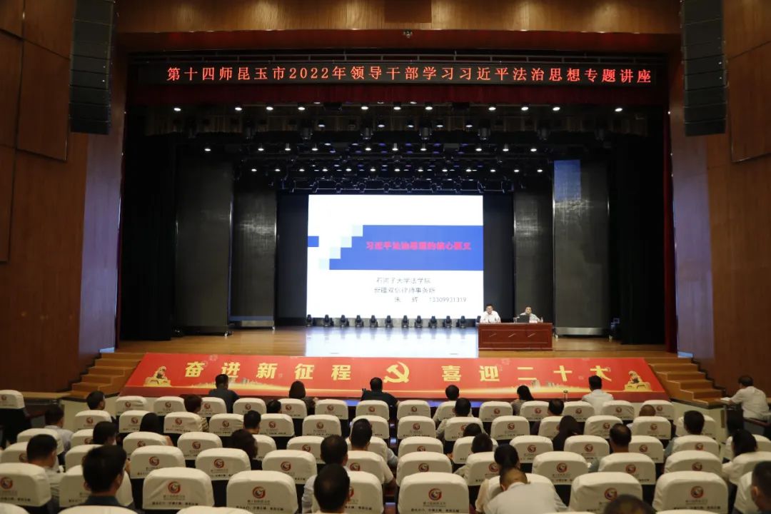 6月30日,第十四师昆玉市学习习近平法治思想专题讲座在文化馆举行,第十四师昆玉市机关各部门副处级以上领导60余人参加讲座。