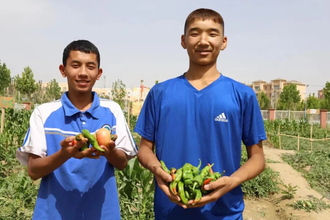 皮山农场九年级学生努尔曼古丽·努尔艾合麦提说:“我家里也种的有蔬菜,通过学校开展的劳动实践课程,自己种,自己浇水,看到瓜果成熟以后,我特别自豪,我体会到了家里人的辛苦,也知道了粮食的来之不易,以后一定会好好珍惜粮食不浪费。”