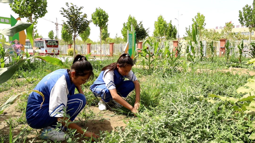 自今年3月初,皮山农场中学劳动教育实践基地正式投入使用,师生们齐上阵,热火朝天地手握铁锹平整土地、翻地打埂、捡石除草,经过老师、学生们的共同努力,校内闲置的一片荒地变成了平整的种植地。师生携手培育的劳动沃土,让皮山农场中学的劳动教育自此“落地生根”。