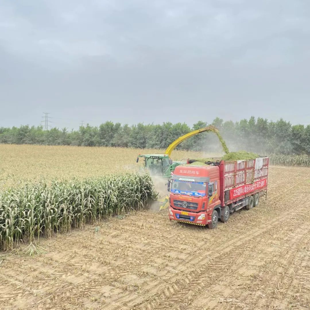 走进种植地里,只见连片的青贮玉米长势喜人,一台台大型进口联合收割机正在玉米地里来回穿梭,群众正忙着收割、装车,运往津垦牧业交售,成为秋收时节一道亮丽的丰收景象。