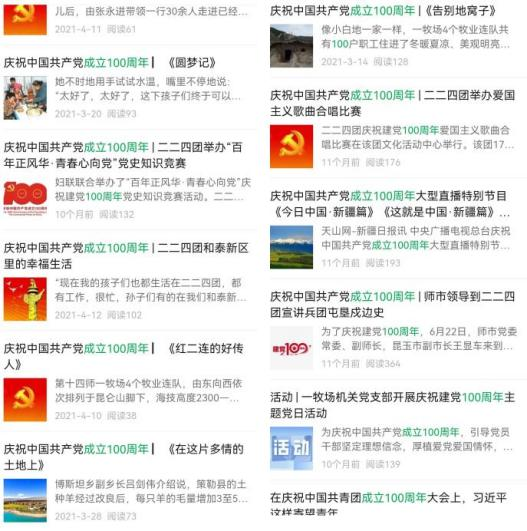 围绕“党史学习教育”这一主线,各媒体平台开设《学党史 悟思想 办实事 开新局》《党史学习教育》《党史追寻》《我为群众办实事》《党史上的今天》等栏目,在师市营造党史学习教育浓厚氛围。深入挖掘身边先进典型,刊发了《永远扎根大漠的胡杨——追记原皮山农场九连党支部书记、指导员岳敏》等有温度、有深度的文章,用身边事教育身边人,推动党史学习教育走深走实。
