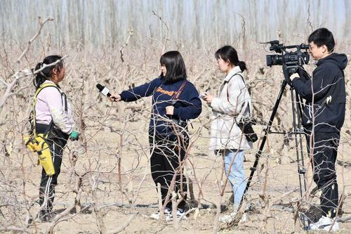 记者深入田间地头、工地采访