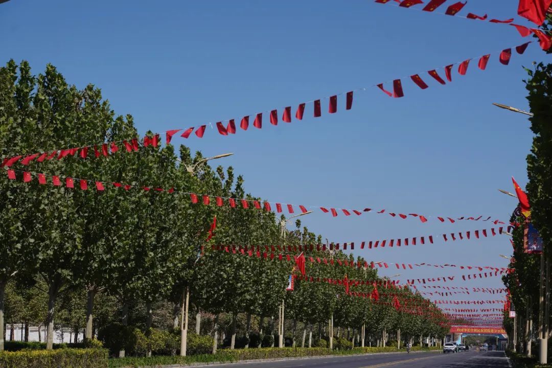 二二四团主干道上悬挂的五星红旗 文广中心记者 张瞾静 摄