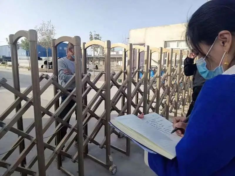 “你好,我们是园区管委会疫情防控工作指挥部督导组的工作人员,园区下沉挂钩干部今天下午过来没有,挂钩干部有没有向你们传达最新防控要求?你们目前在岗人数有多少?生产情况怎么样?”督导组工作人员石莉莉向雷士农业公司负责人询问,并一一做了记录。