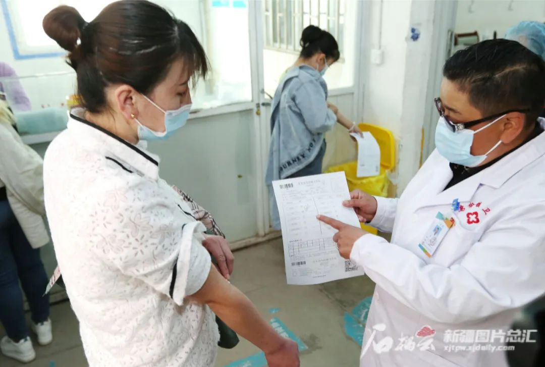 图片4月27日,库车市乌恰镇卫生院的医护人员在给体检群众介绍相关流程。今年,库车市在落实疫情防控措施的前提下,早动员、早准备,有序开展全民健康体检工作。截至目前已完成健康体检12万余人,全年预计有37万余名城乡居民享受这项惠民政策。尼亚孜·热合曼 摄