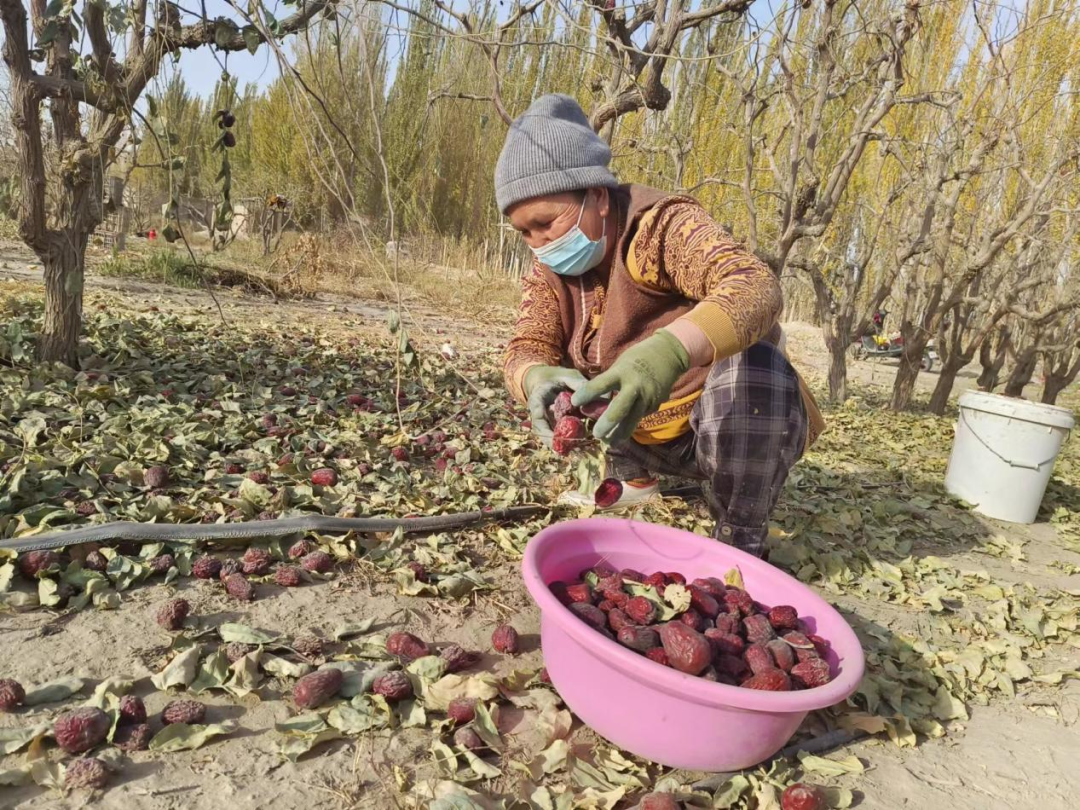 据了解,二二五团三连将“我为群众办实事”落实、落地、落细,推出一系列有力举措,解决群众急难愁办的问题,每年都会组织干部、“两委”帮助三连辖区内的枣农们收枣,“这边的红枣又大又甜,吃起来香甜软绵,我把照片发给亲人朋友后,他们都羡慕不已。虽然刚开始捡红枣觉得很辛苦,但是时间一长就习惯顺手了,我一天可以捡好多筐。”二二五团西部计划志愿者王烨燃高兴地说。(师市融媒体中心通讯员 朱霞)