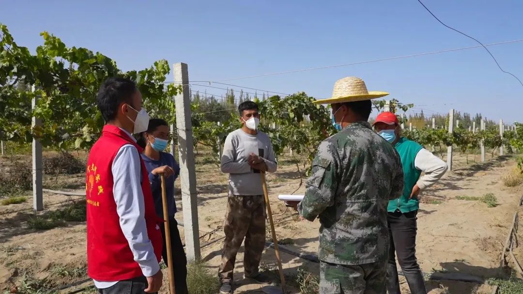 技术人员指导群众葡萄管理。师市融媒体中心通讯员 江宇 摄