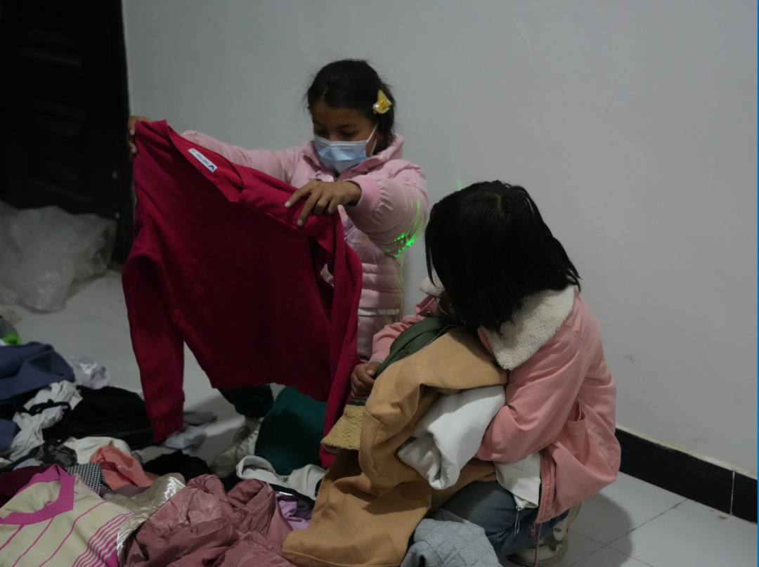 二二五团四连发放塔里木大学捐赠爱心衣物