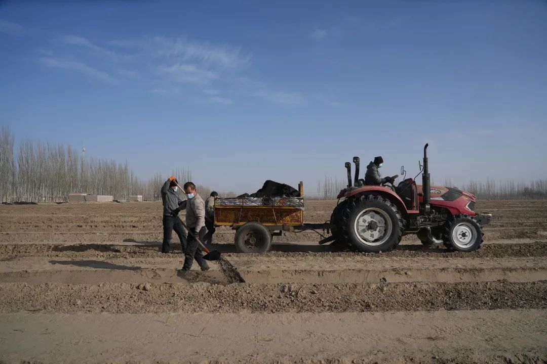 二二五团还争取资金3000万元,实施二二五团1000亩特色苹果示范工程项目,走进施工现场,拖拉机将一车车混有微生物菌剂、生物有机肥、脱硫石膏等混合物拉入刚开完沟的地里,工人们有序给土地施足底肥。