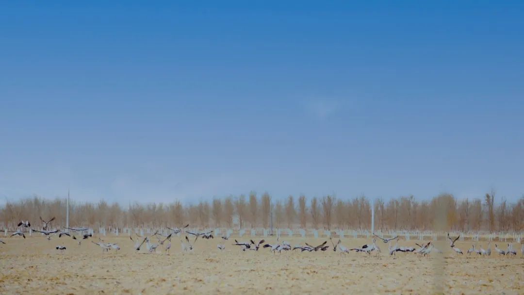拉依苏水库巡护人员麦丽凯姆·麦提图尔荪说:“巡逻中经常能看到野鸭、棕头鸥、白鹭等珍稀动物,特别是2021年国家二级保护野生动物灰鹤第一次来到我们团场湿地后,今年又回来了,随着时间的推移,我们产生了感情,现在他们应该在飞去农田里觅食去了。”