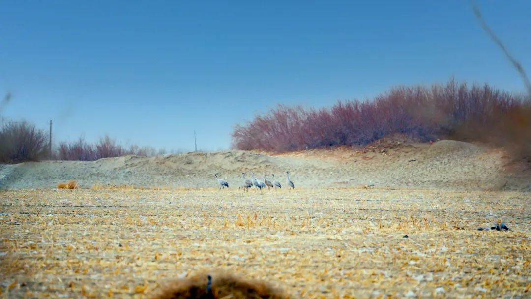站在湿地边上远远看去,成群的赤麻鸭在水面、水草中时而低头觅食、时而追逐嬉戏、时而翩翩起舞。走进收完玉米的农田里,灰鹤或觅食嬉戏,或伫立张望,或飞翔起舞,或两三相依,众多的野生动物与优美的湿地、宁静的农田共同构成了一幅美丽的生态画卷。