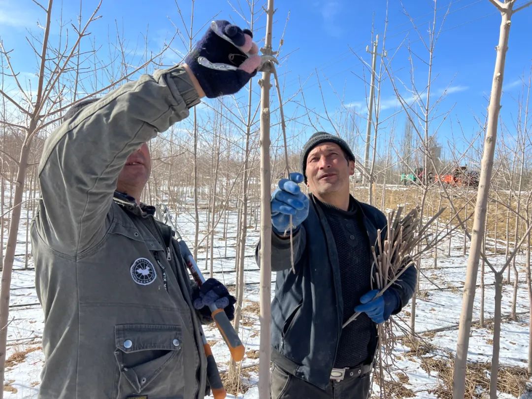 “我今天带着28人到五连苗圃基地,进行修剪工作,现在修剪不影响树木生长,便于施肥管理。”一牧场农发中心林管员班长 马拜提·阿卜杜热合曼告诉记者。