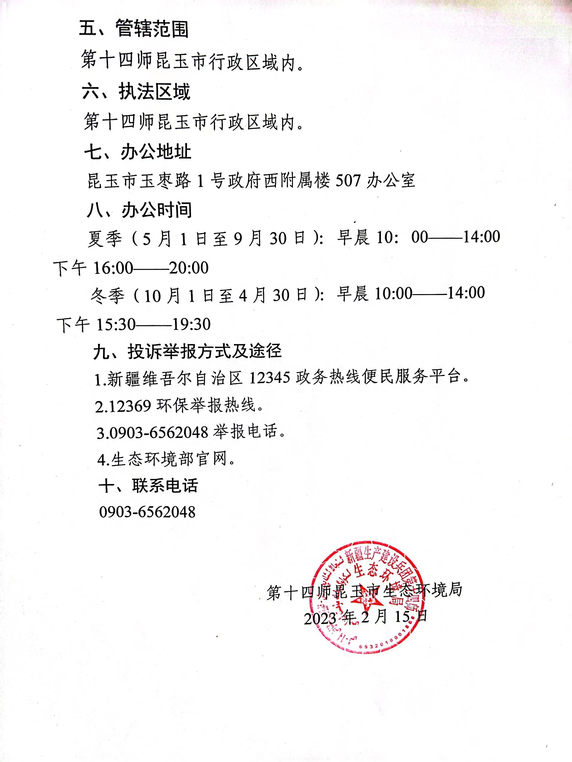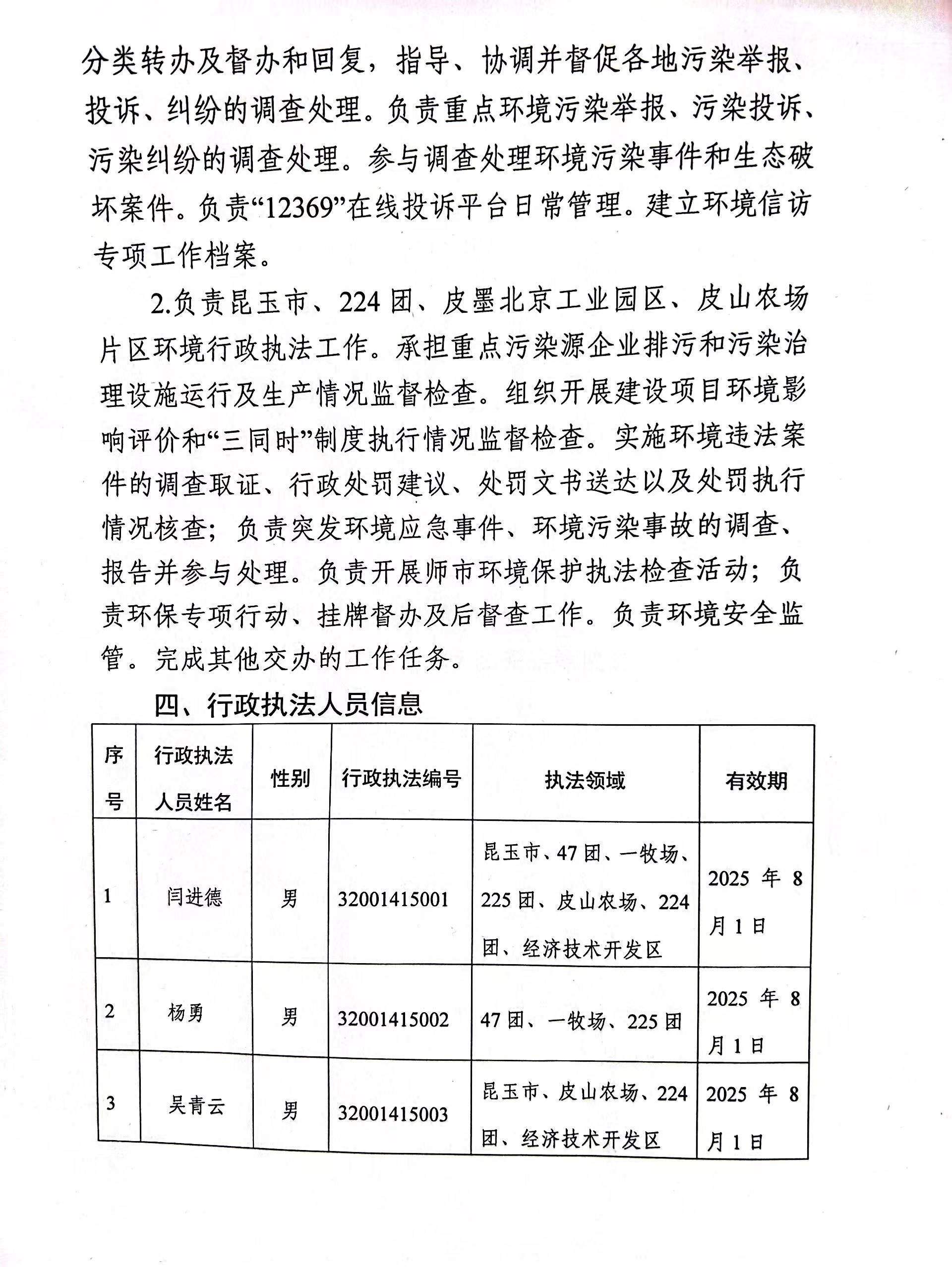 第十四师昆玉市生态环境局行政执法信息公开