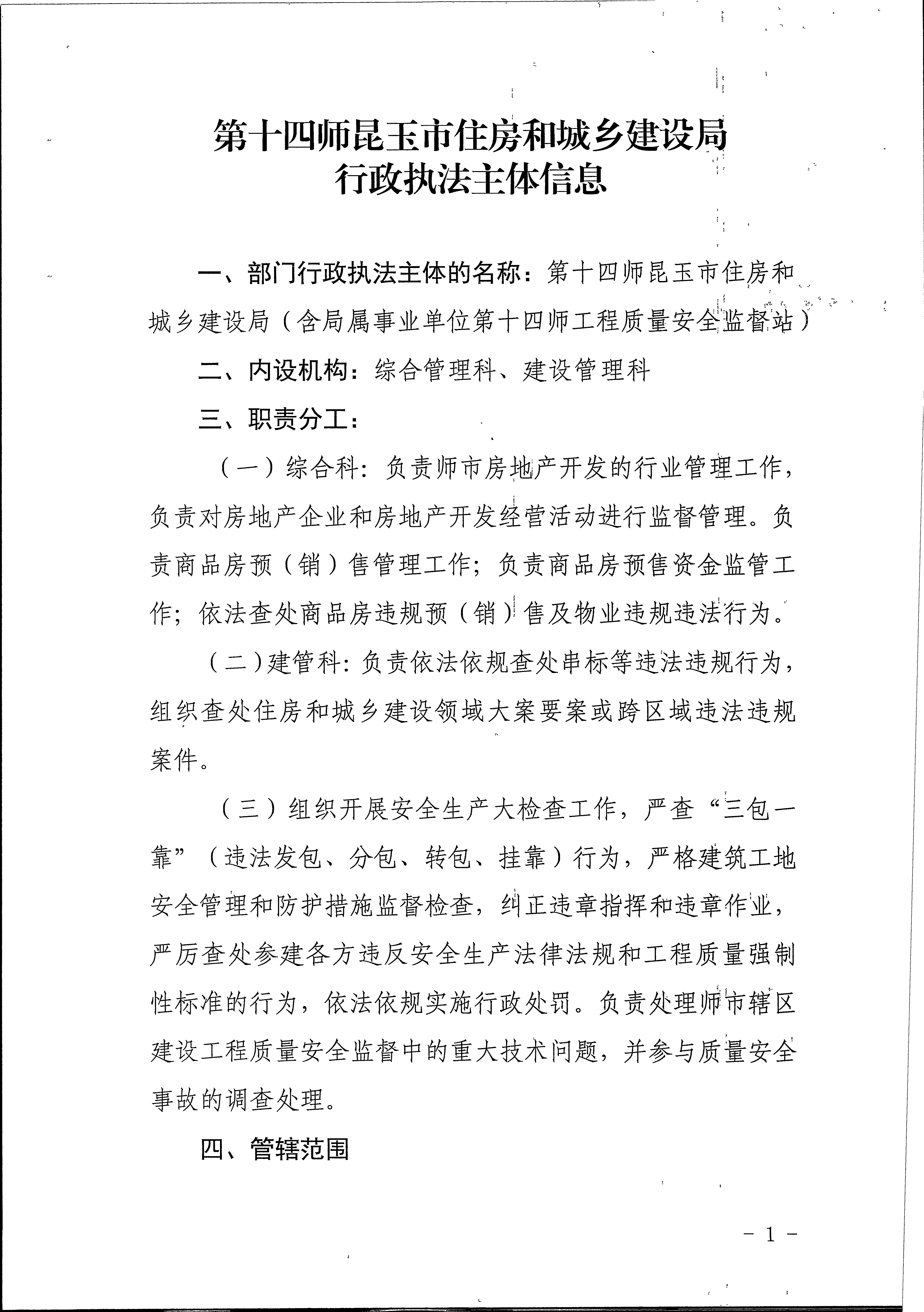 第十四师昆玉市住房和城乡建设局行政执法主体信息