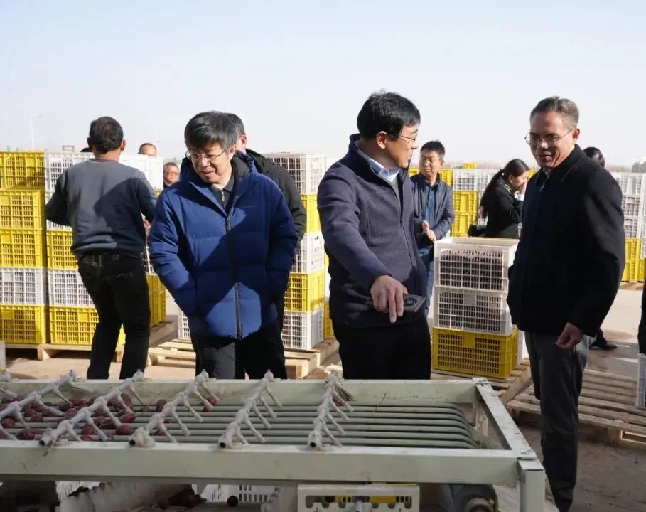 在二二四团电子商务协会,红枣文化产业园,二二四团红枣加工企业御达康,张德龙一行人详细了解二二四团红枣种植、销售经验,以及与电子商务协会的合作运行机制,对二二四团打通红枣生产、加工、销售全产业链的做法表示认同。