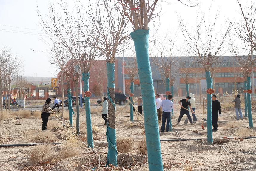 现场,各部门领导带头撸起袖子弯下腰、俯下身子拿起锹,大家协作、相互配合,给代管林的树木施肥、浇水、除杂草、修理平整树坑,处处一派热火朝天的景象。转眼间,一棵棵树木肥料水分充足,埂子整齐,焕发出新的气象。