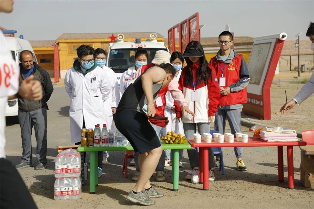 参赛选手到补给点补充能量。师市融媒体中心记者 李晓丽 摄