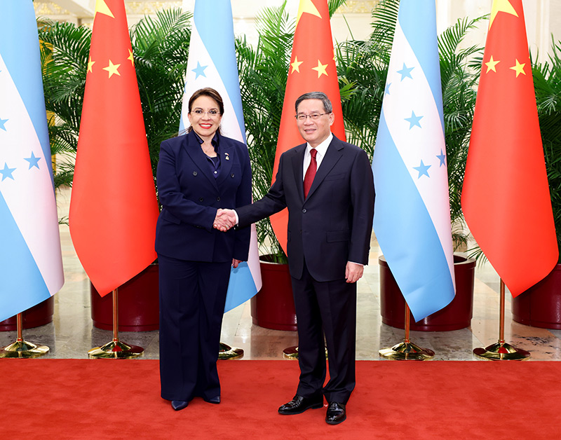 李强表示,今年3月,习近平主席和总统女士作出中洪建交的重要政治决断,翻开了两国关系崭新的一页。中方高度赞赏洪方作出恪守一个中国原则的坚定承诺,选择站在历史正确一边。中方愿同洪方携手努力,落实好两国元首重要共识,推动各领域合作蓬勃发展。