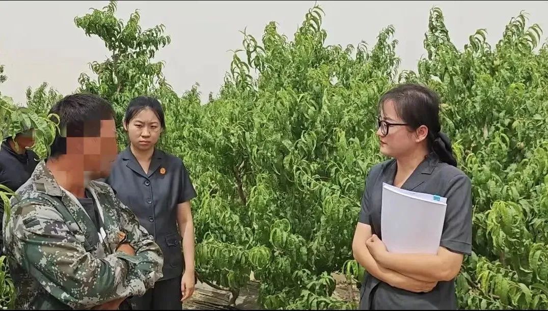 法官深入桃树地查看桃树受灾情况。师市融媒体中心通讯员 卢佩婵 摄