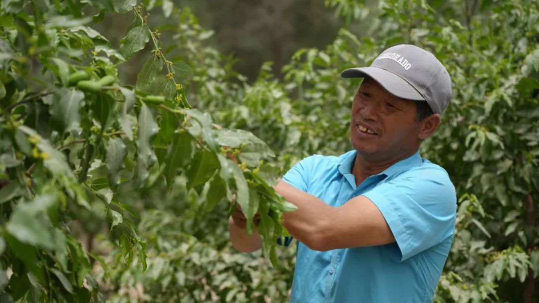 “我家有45亩枣树地,红枣正处于膨大期,第一批幼果已经成形,我们最近正在给红枣打叶面肥,争取让果实快速发育,只有特级果多了,收入才能高。”吴永明边忙边说道。