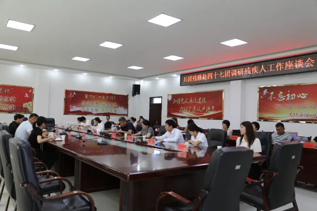 7月13日,兵团残联党组成员、副理事长彭冬一行三人在十四师残联理事长图妮萨罕·阿不杜热合曼的陪同下到四十七团调研指导工作并召开座谈,四十七团党委副书记、团长鲍安明参加会议,团党委常委、副政委郑海晓及相关工作人员陪同调研。