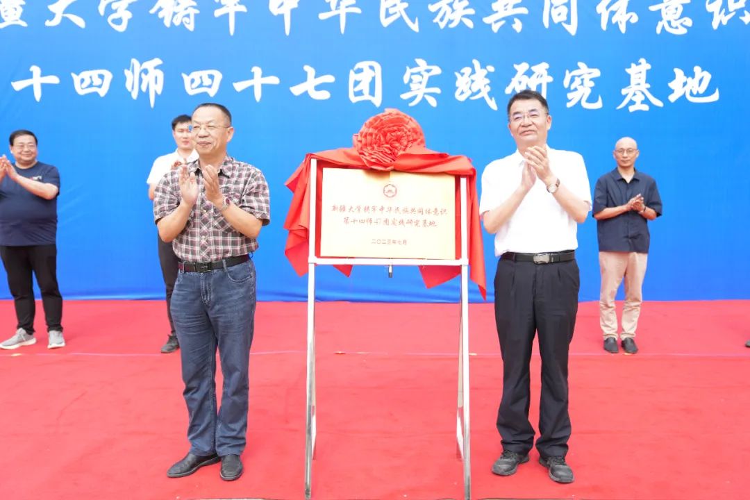 7月24日,新疆大学铸牢中华民族共同体意识研究调研基地揭牌仪式在第十四师四十七团举行,四十七团党委书记、政委郭鸿海、新疆大学马克思主义学院党委书记张家飞出席揭牌仪式并致辞,新疆大学马克思主义学院师生代表及四十七团有关负责同志参加揭牌仪式。